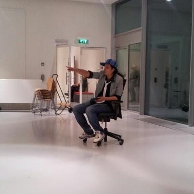 Na het soundchecken konden we nog even oefenen, met aanwijzingen door Jennifer vanaf een mooie bureaustoel die speciaal voor haar was geregeld: