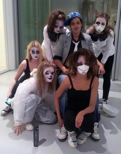 Hieronder wat foto's van de voorbereidingen voor het optreden (oefenen, schminken) en vervolgens foto's van het optreden.